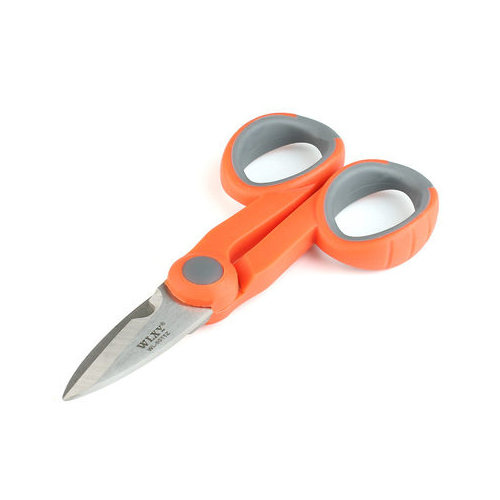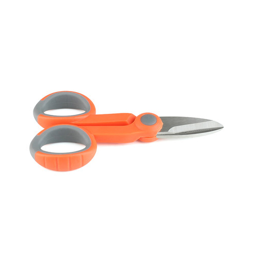 Serrated design of cutting edge effectively shears Kevlar wire.
