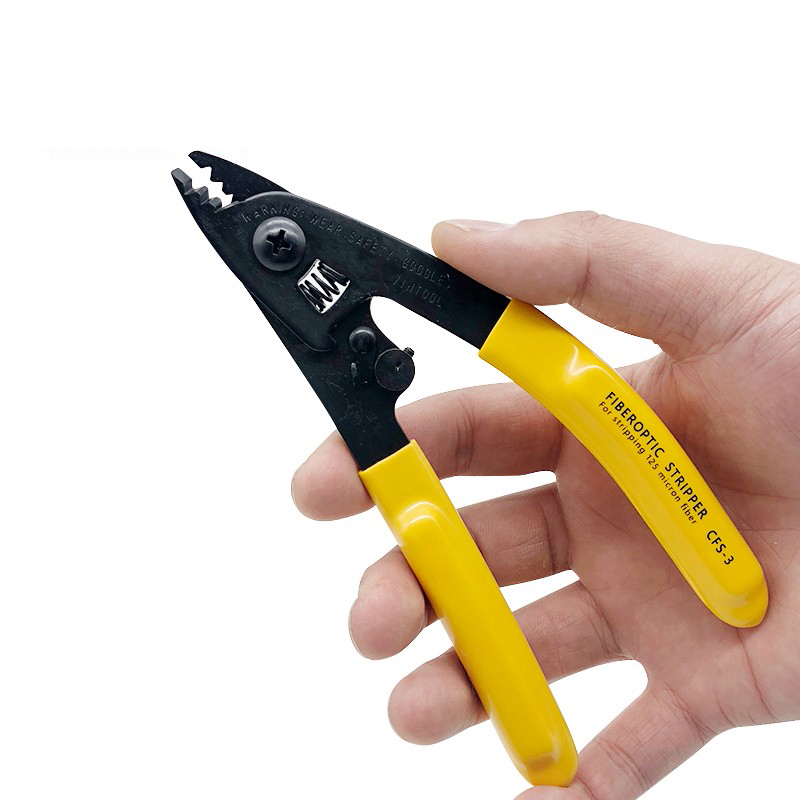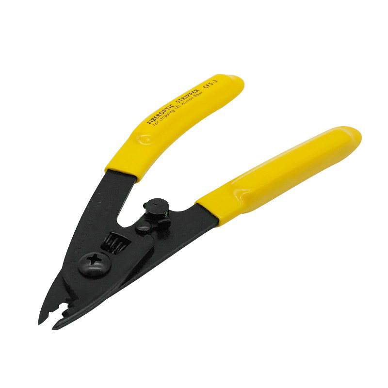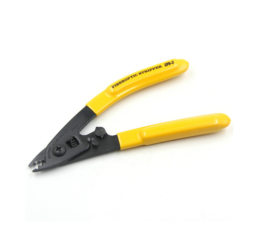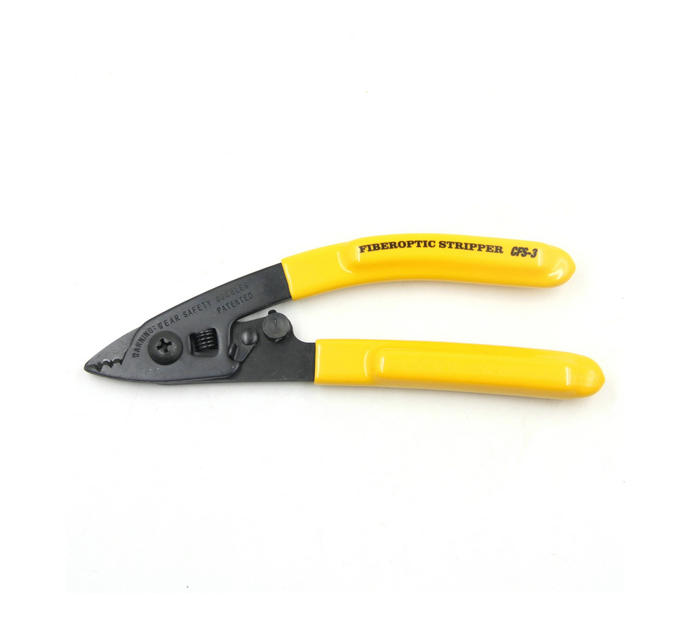 This three-hole fiber stripper is an exceptional tool recommended for stripping 250µm coated fiber and 900µm/3.0mm buffer tube. It has precise laser drilled hole, soft plastic-cushioned handle grip, and super accurate hardened stripping jaws, ensuring smooth clean stripping action. It can also be locked to hold tool closed when it is not in use.